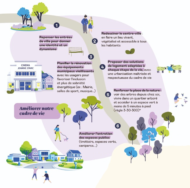 Les aspirations des habitants évoluent. Il est urgent de transformer l’urbanisme de notre commune pour y répondre et créer une ville apaisée, harmonieuse et sécurisée, favorisant la mixité des usages et les rencontres, tout en autorisant un nombre raisonné de logements.